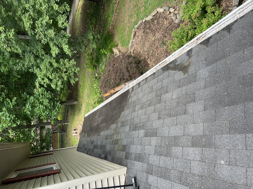We also cleaned the gutters and down spouts. For roof cleaning or gutter cleaning in the Bloomington area, give us a call today!